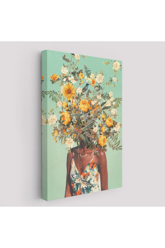 YB HG Çiçek Başlı Siyahi Kadın, Afrıkalı Kadın Kanvas Tablo -6079