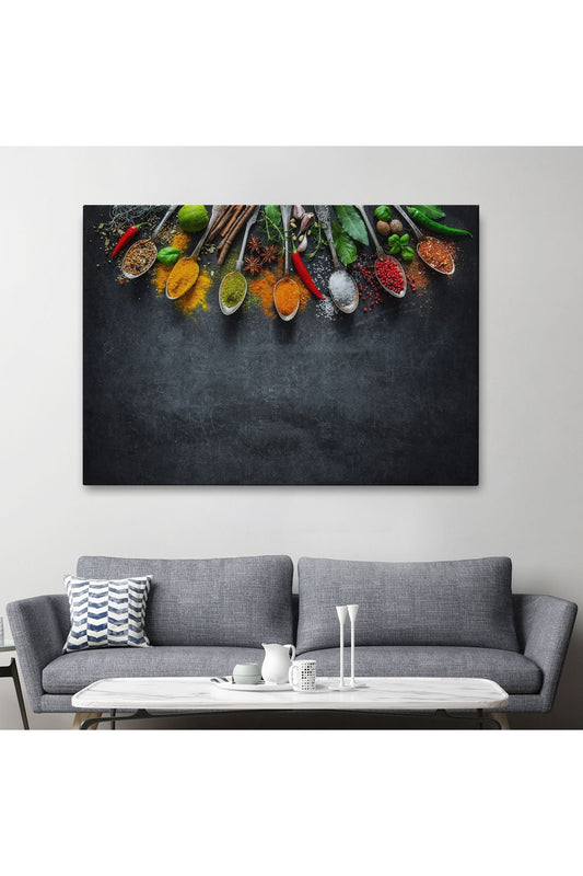 YB HG Mutfak Masasın da Baharatlar Dekoratif Kanvas Duvar Tablosu-3517