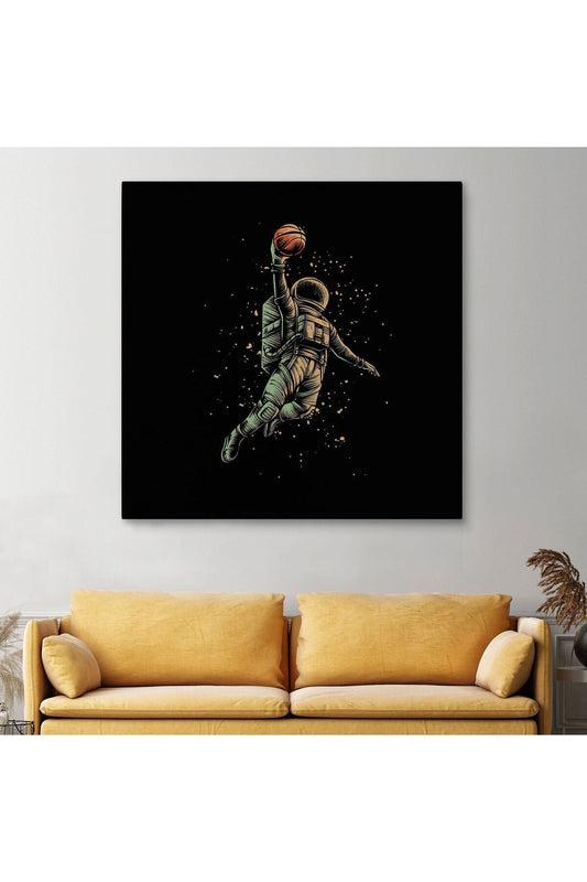 YB HG Ay'da Basketbol Oynayan Astronot Kanvas Tablo-5067