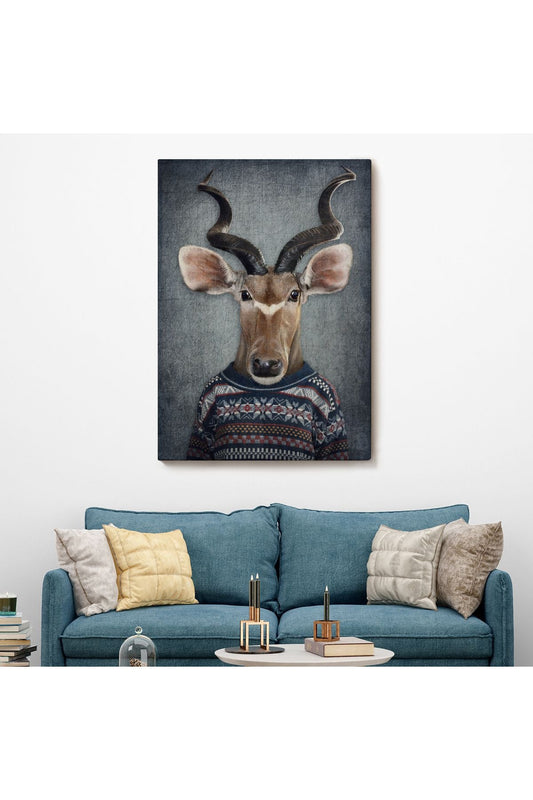 60% İndirimYB HG Antilop Kafalı İnsan Kanvas Tablo-4996