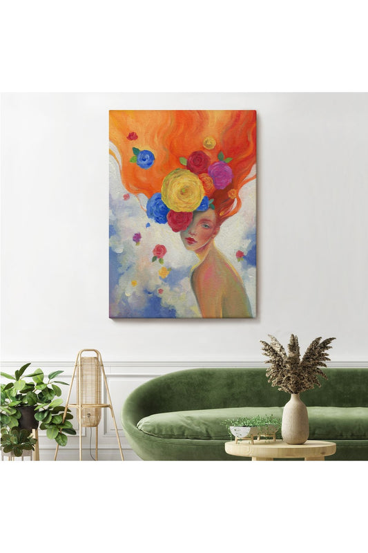 YB Çiçek Saçlı Kadın Yağlıboya Görünüm Dekoratif Kanvas Duvar Tablosu-5942