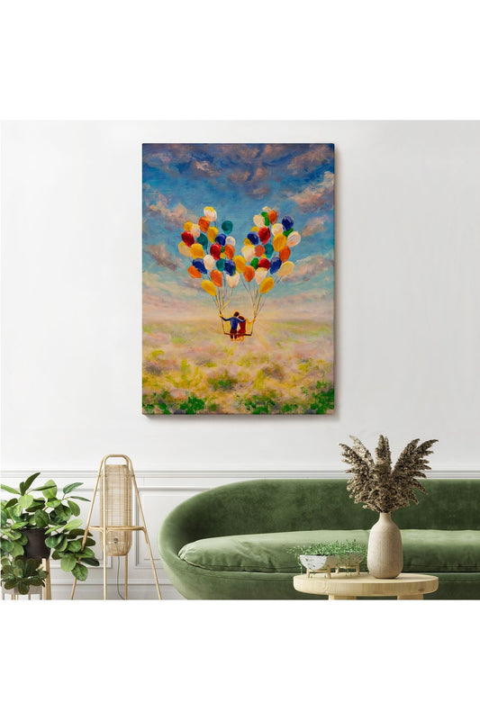 Bolanlar Ile Uçan Sevgililer Yağlıboya Görünüm Dekoratif Kanvas Duvar Tablosu-5944