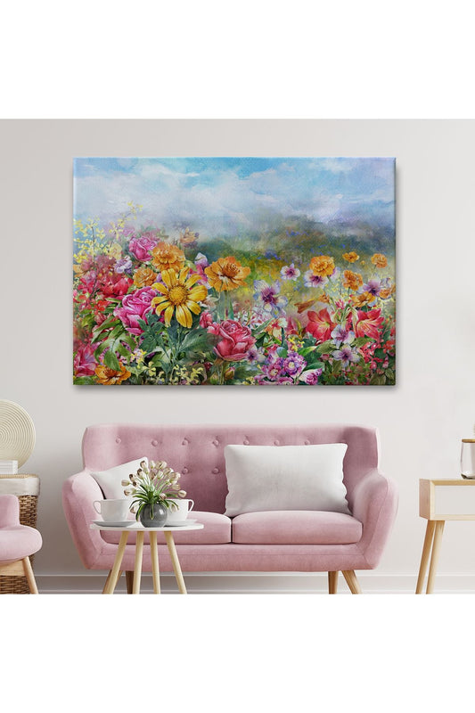 Çok Renkli Çiçekler Manzara Kanvas Duvar Tablosu-3426