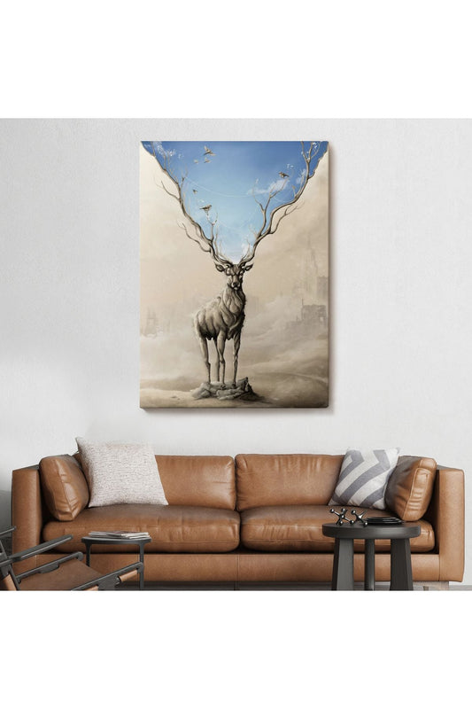 Daha Güzel Bir Doğa Hayal Eden Geyik Sürreal Duvar Tablosu-6017