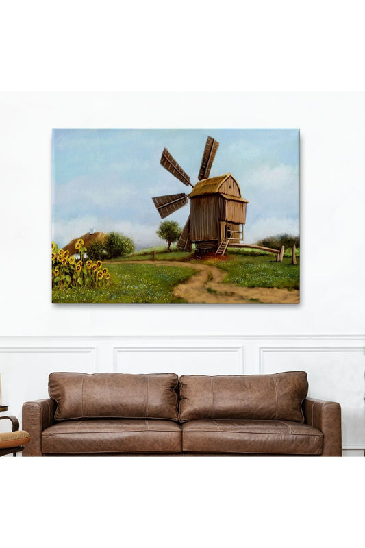 DB Eski Yel Değirmeni Yağlıboya Görünüm Dekoratif Kanvas Duvar Tablosu-3746