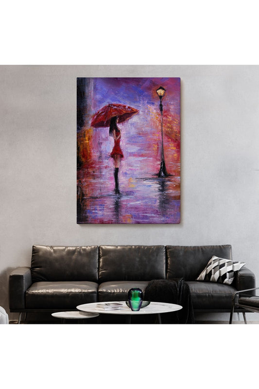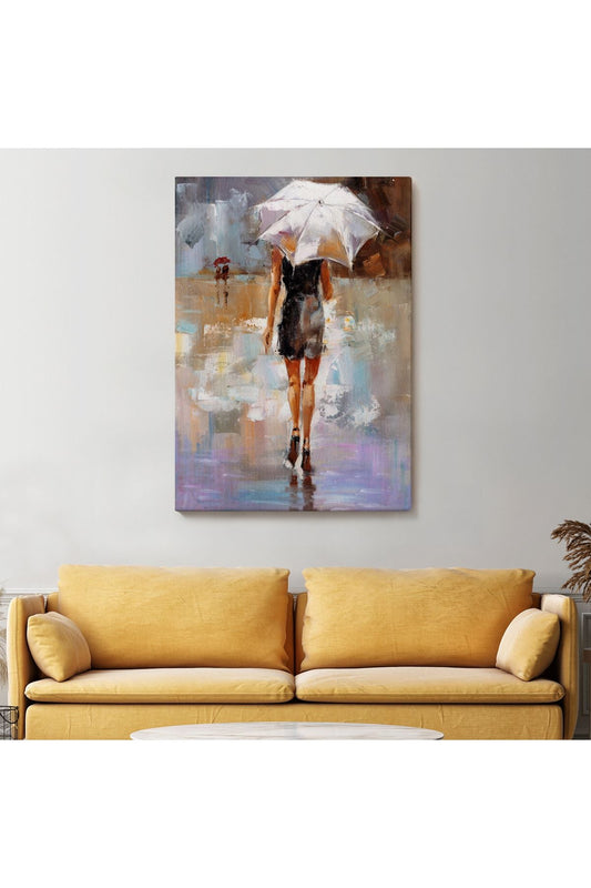 DB Yağmurda Yürüyen Kadın Yağlıboya Görünüm Dekoratif Kanvas Duvar Tablosu-5928