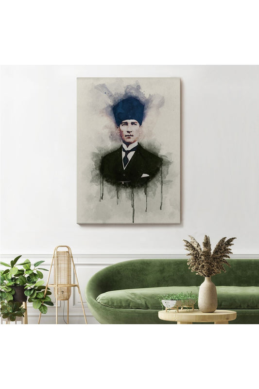 DB Atatürk Portre Tablosu Mustafa Kemal Atatürk Dikdörtgen Dekoratif Kanvas Tablo-CZ-77