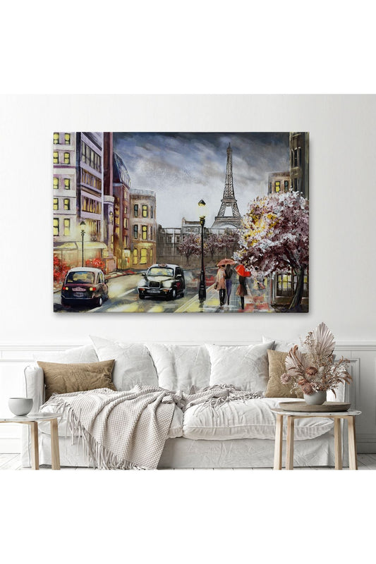 DB Paris Sokakları Yağlıboya Görünüm Dekoratif Kanvas Duvar Tablosu-3485