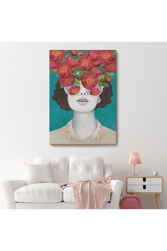 Dekoratif Duvar Tablosu-Çiçek Saçan Optimist Kadın Kanvas Tablo 6269
