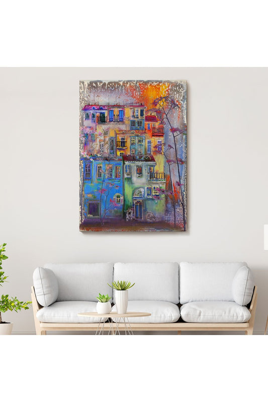 Dekoratif Duvar Tablosu-Suluboya Görünüm Hollanda Evleri Kanvas Tablo 5926