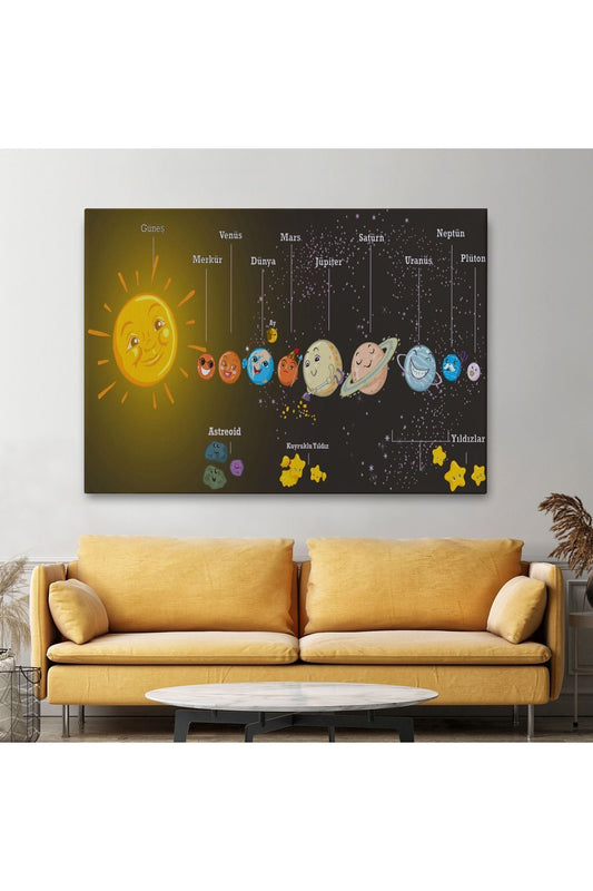 Dekoratif Kanvas Tablo-Gezegenler ile Güneş Sistemi Duvar Tablosu 6641