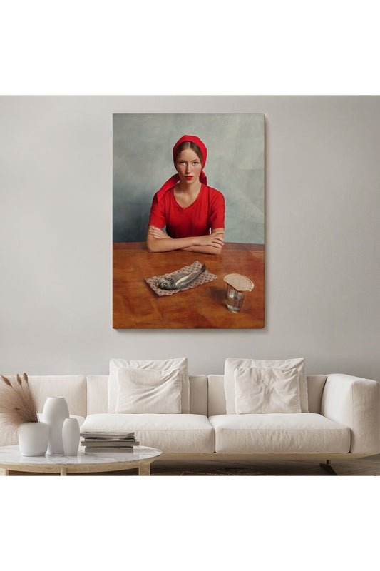 Dekoratif Kanvas Tablo-Balık ve Kırmızı Kıyafetli Kız Duvar Tablosu 6264