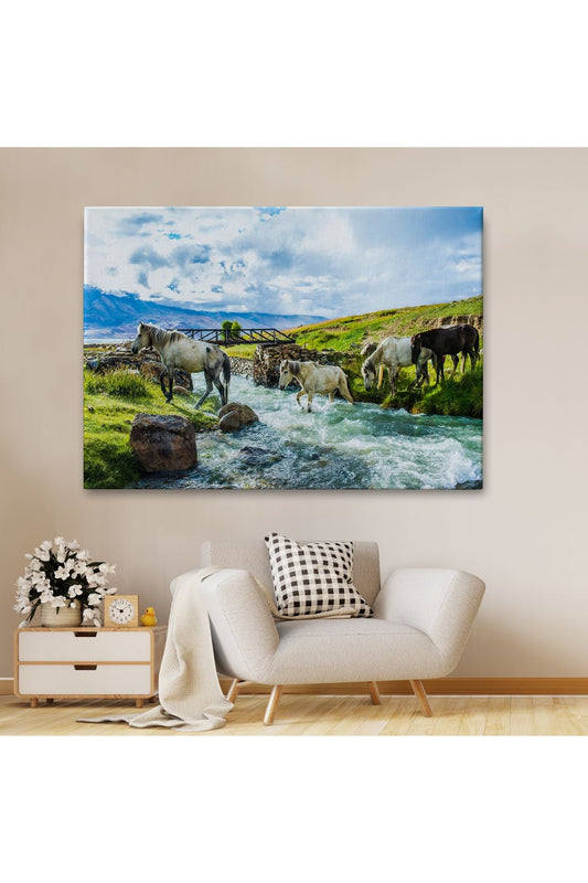 Dereden Geçen Atlar Manzaralı Dekoratif Kanvas Tablo 1169