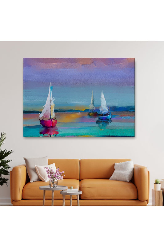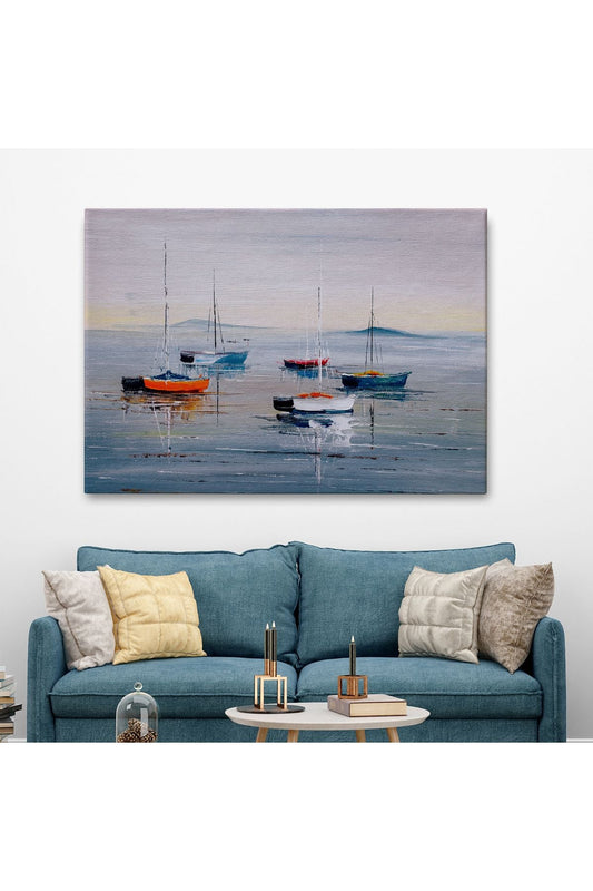 Denizdeki Yelkenliler Yağlıboya Görünüm Dekoratif Kanvas Duvar Tablosu-3616