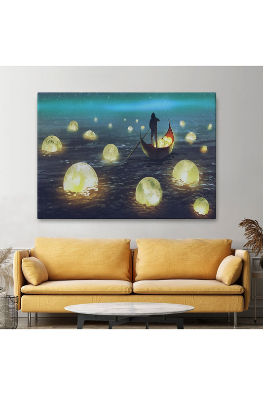 Denize Düşen Ayları Toplayan Adam Yağlıboya Görünüm Tablo-3575