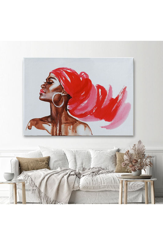 Afrikalı Kadın Suluboya Görünüm Dekoratif Kanvas Duvar Tablosu-3591