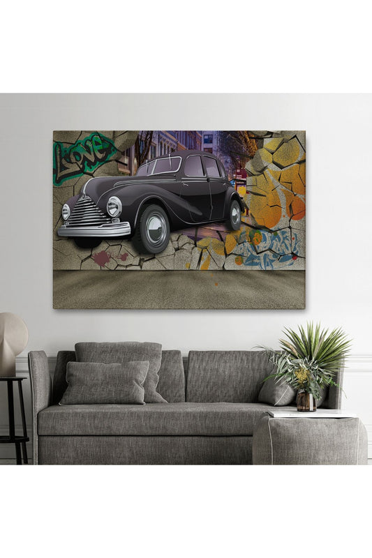 Duvardan Fırlayan Klasik Araba Dekoratif Kanvas Duvar Tablosu-3631