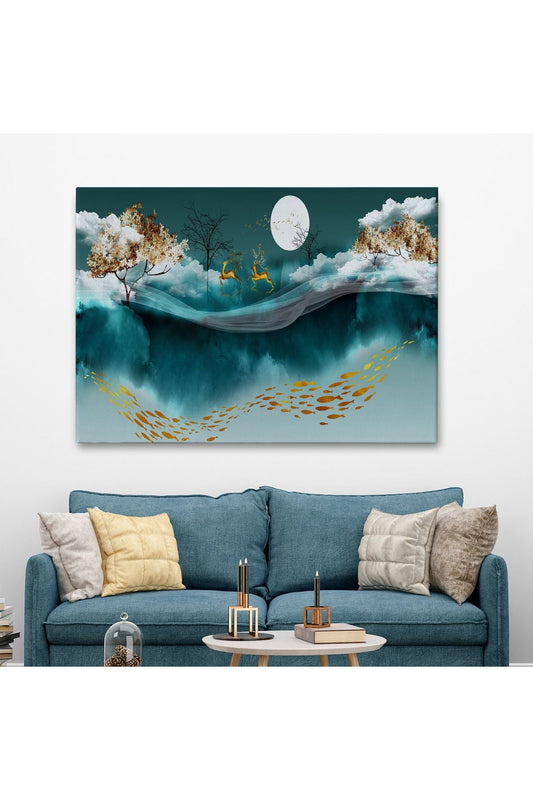 emn seri001 Ormanda Koşan Geyiklerin Dijital Sanatı Kanvas Tablo-5040