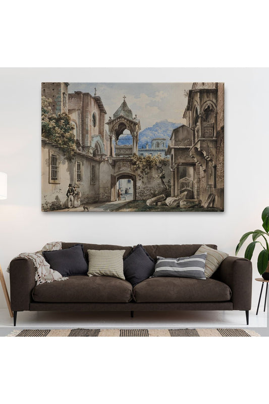 Eski İtalyan Evleri Yağlıboya Görünüm Dekoratif Kanvas Duvar Tablosu-3657
