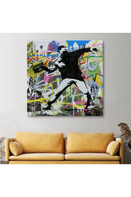 Fırlatma Çiçekleri Sokak Sanatı Kanvas Tablo, Renkli Çiçek Bombacısı, Anarşi Graffiti-5342