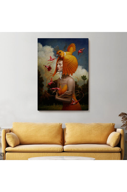 Gerçeküstü Yağlıboya Kadın Kuş Steven Kenny Kanvas Tablo-5225