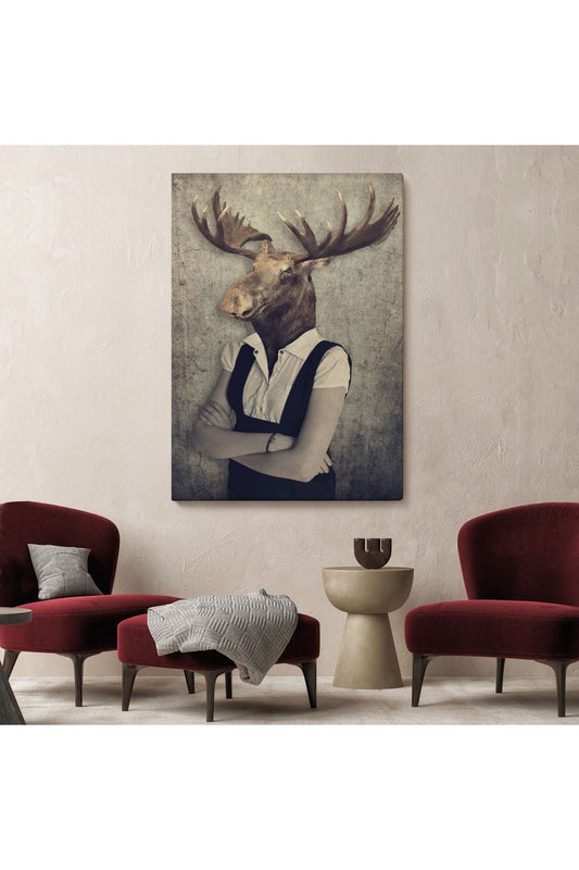 60% İndirimGeyik Kafalı İnsan Kanvas Tablo-4984