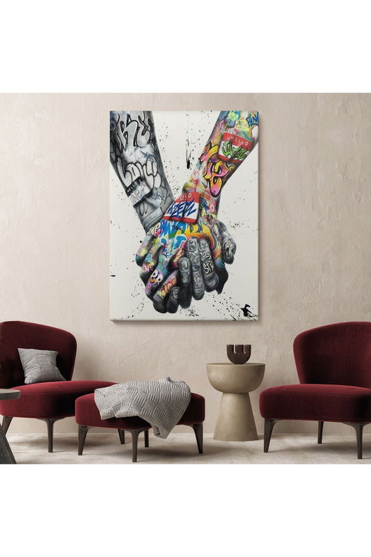 Graffiti El Duvar Posteri, El Ele Tutarak Duvar Sanatı Kanvas Tablo-5312