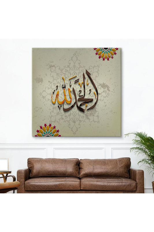Hat Sanatı İle Arapça Elhamdülillah, Yazılı Dekoratif Kanvas Tablo-3266