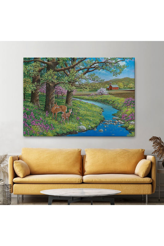 Akarsu Kenarındakı Ceylan ve Yavrusu Duvar Tablosu-6535