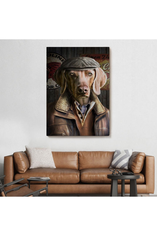 İnsan Kıyafetli Kasketli Köpek Dekoratif Duvar Tablosu -6178