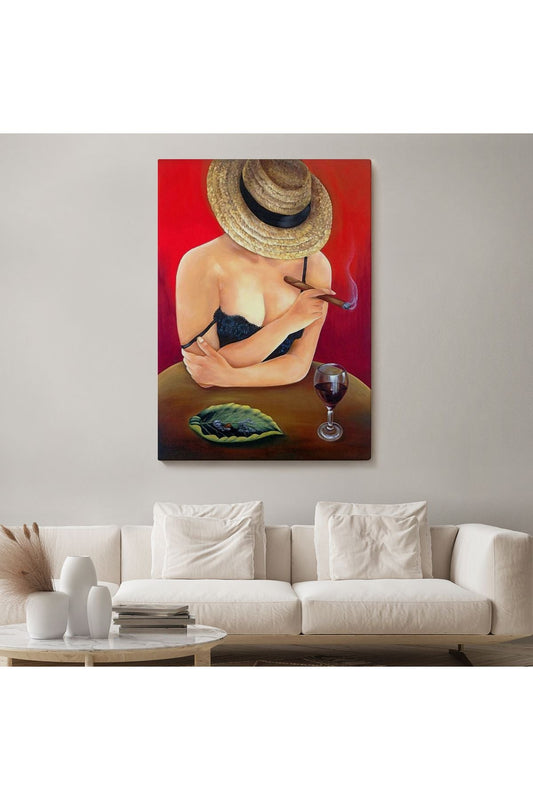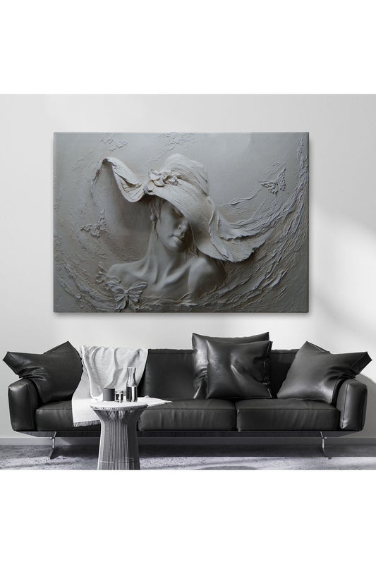 Kabartma Görünümlü Şapkalı Kadın Kanvas Duvar Tablosu -3424