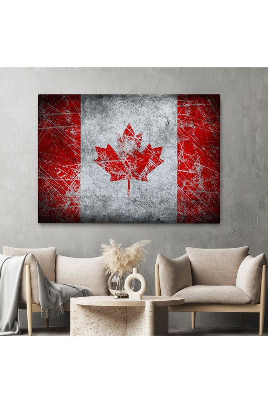 Kanada Bayrağı Rustik Kanvas Tablo, Kanada Bayrağı Tablo, Ev ve Ofis Dekoru-5403