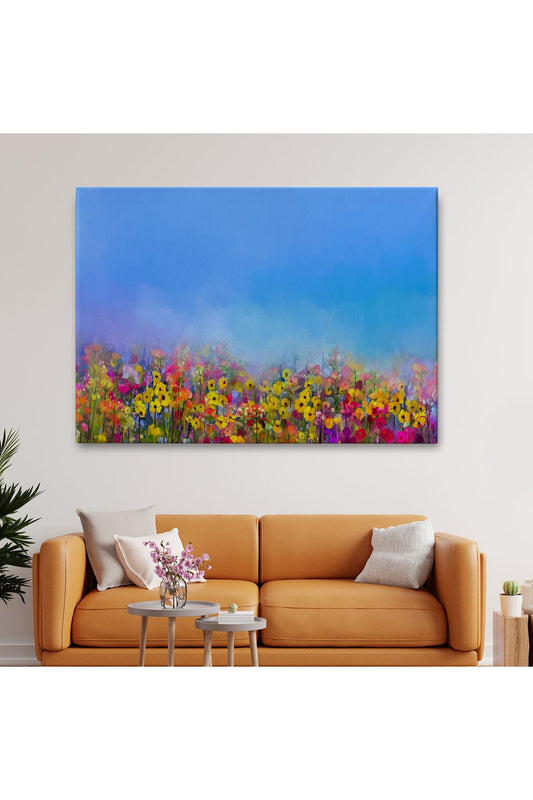 Renkli Çiçekler Salon Dekoratif Kanvas Duvar Tablosu-3479