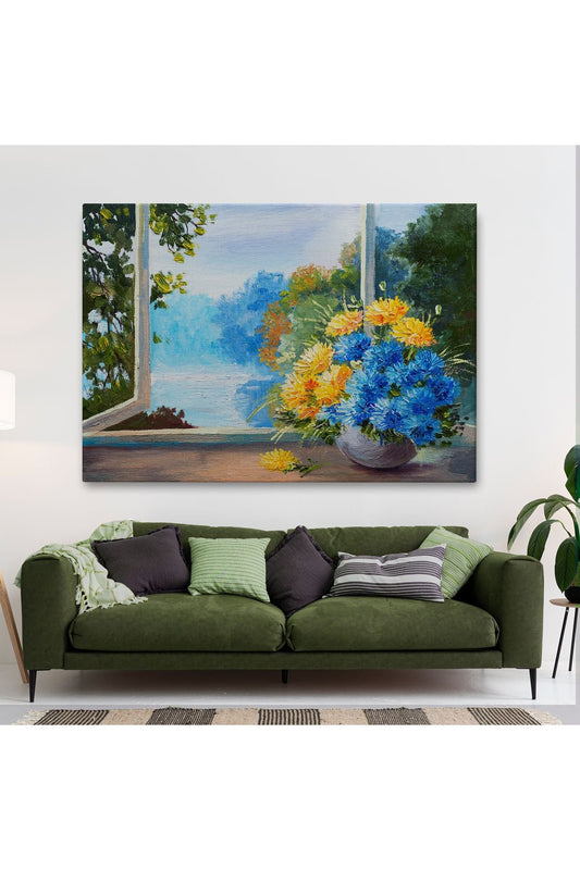 Pencere Kenarıdaki Çiçek Buketi Kanvas Duvar Tablosu-3453
