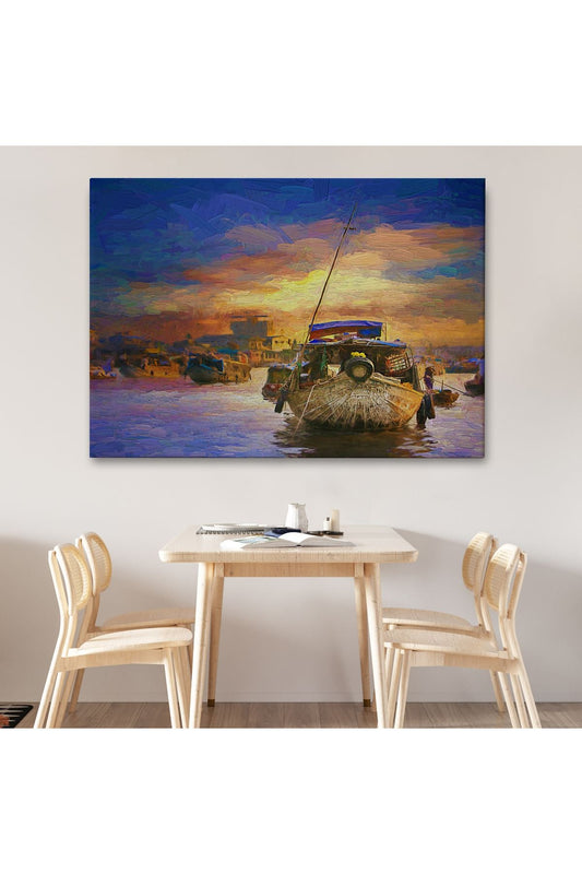 Özel Tasarım, Dekortif BaskıVietnam'ın Mekong Yüzen Pazar Tho'da Tekne Tablosu-1225