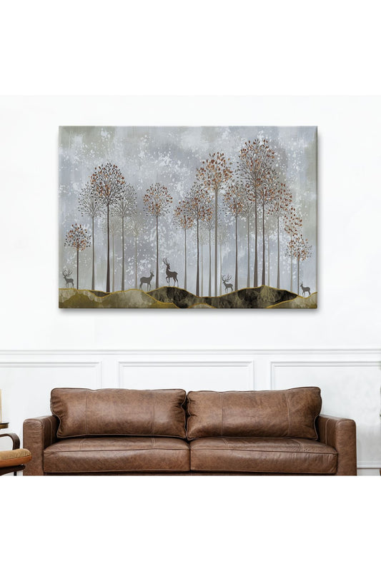 Dekoratif Kanvas Tablo-Ormanda Geyikler Duvar Tablosu 3682