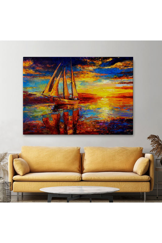 Deniz ve Yelkenli Manzarası Yağlıboya Görünüm Dekoratif Kanvas Duvar Tablosu-3708
