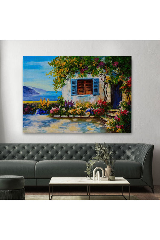 Deniz Manzaralı Güzel Ev Dekoratif Kanvas Duvar Tablosu-3437
