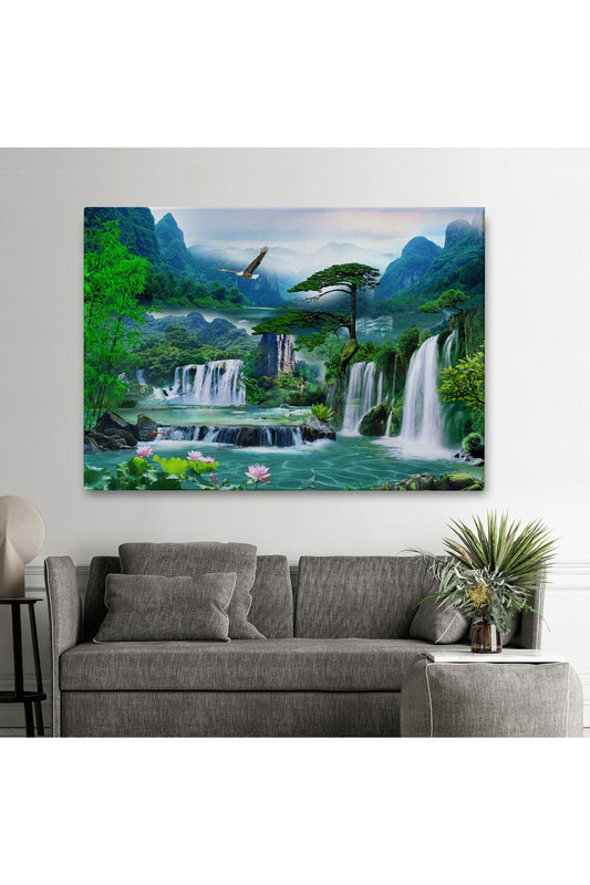 Şelale Manzaralı Dekoratif Kanvas Duvar Tablosu-3676