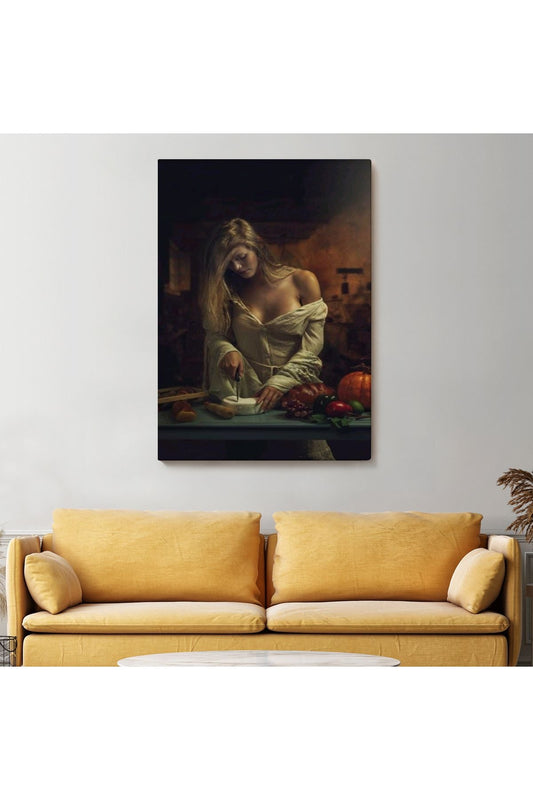 Peynir Kesen Güzel Kadın Dekoratif Duvar Tablosu-6299