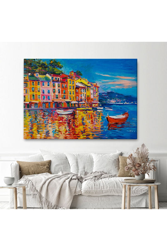 Deniz de Tekneler Yağlıboya Görünüm Dekoratif Kanvas Duvar Tablosu-3457
