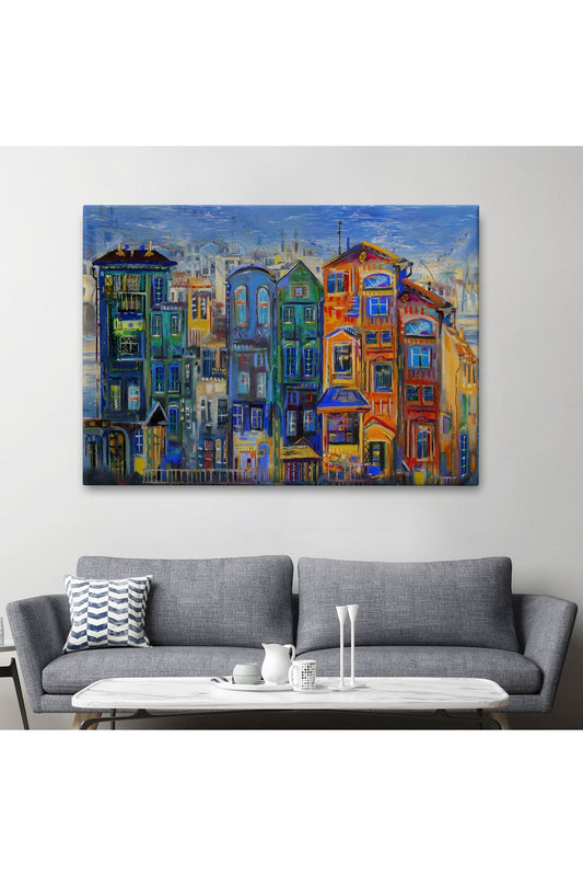 Hollanda Evleri Yağlıboya Görünüm Dekoratif Kanvas Tablo-3442