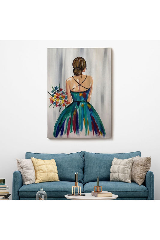 Renkli Çiçekli Kadın Dekoratif Duvar Tablosu -6257