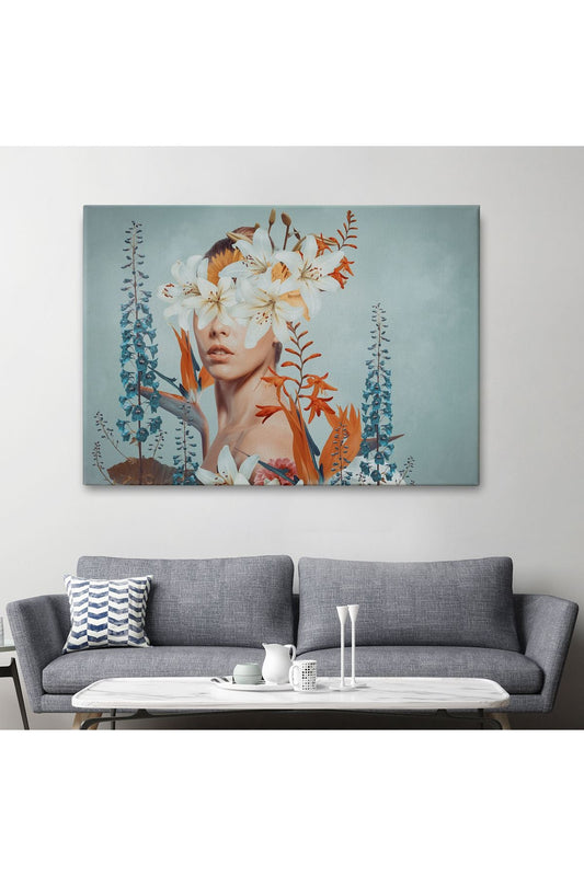 Çiçekler İçindeki Güzel Kadın Portresi Kanvas Tablo-5022