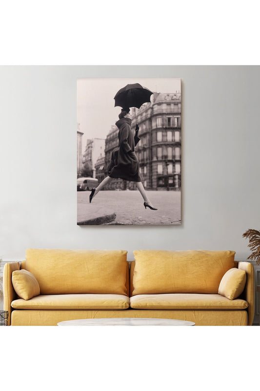 Carmen Sokakta Bir Su Birikintisinin Üzerinden Şemsiyeyle Atlıyor Kanvas Tablo-5286
