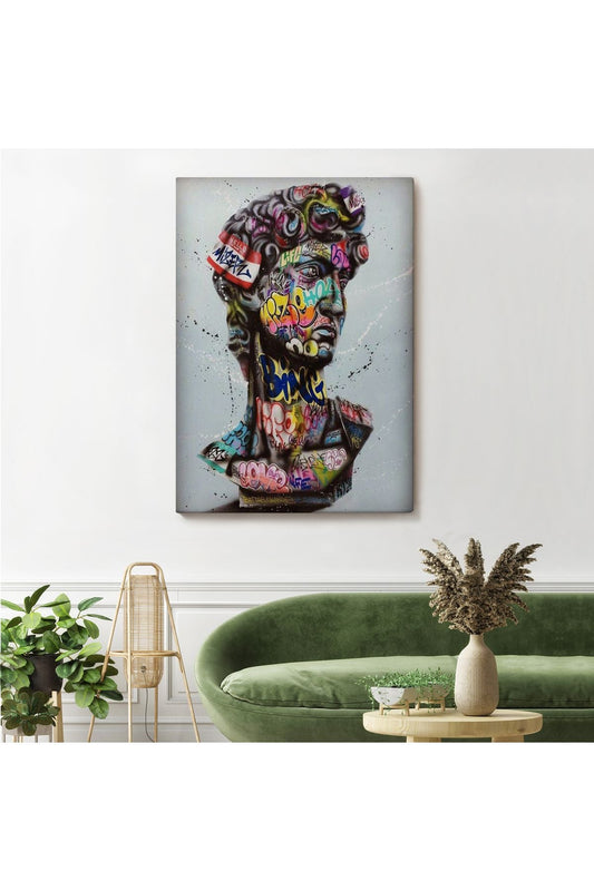 Banksy Antik Kafa Çizimi Renkli Poster, Michelangelo Sokak Sanatı Kanvas Tablo-5318