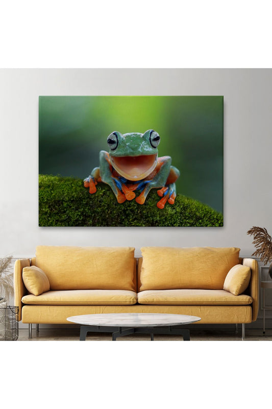 60% İndirimRenkli Gülen Kurbağa Dekoratif Kanvas Tablo 1149