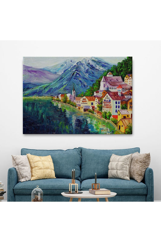 Avusturya Hallstatt Yağlıboya Görünüm Dekoratif Kanvas Duvar Tablosu-3438