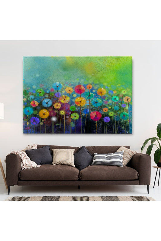 Soyut Çiçekler Suluboya Görünüm Dekoratif Kanvas Duvar Tablosu-3467