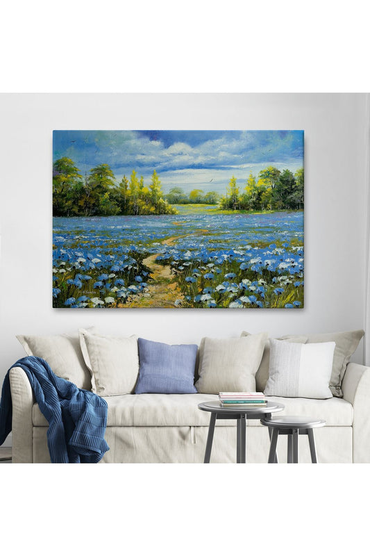 Mavi Gelincik Tarlası Yağlıboya Görünüm Dekoratif Kanvas Duvar Tablosu-3763